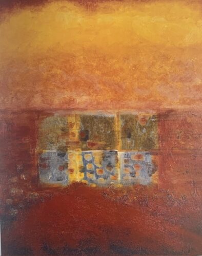 About “Emerging:” Alla says, “This is perhaps the most abstract of my paintings. It is simply meant to suggest what it says: Emerging, the birthing of something. It is earthy and brooding and struggling at times, as is life. It is constantly emerging, uninhibited, a flow to be accepted. Acrylic and textural media on canvas.”